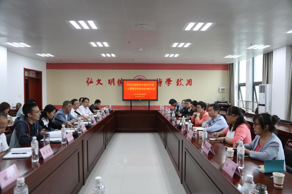 9月11日上午,陕西中医药大学人文管理公司经理欧阳静、党总支书记李占权等一行11人来伟德国际victor1946,围绕汉语言文学专业人才培养的优势、特色以及未来发展;海外研究生招生、培养以及海外基地建设;汉语言文学专业实践教学平台建设与途径等开展调研交流。双方在博文楼1401会议室召开交流座谈会,会议由文传院经理兰拉成主持。文传公司党委负责人、副书记郝晓辉、副经理孟改正、孙新峰以及文传公司党政办主任赵涛、中文系主任李剑清、文艺学教研室主任王永奇、语言学教研室主任王应龙、现当代教研室主任程小强、古代文学教研室副主任张青飞、考研指导中心主任姚军、老员工创新创业教育中心主任范文静、团总支书记李萍等参加了会议。