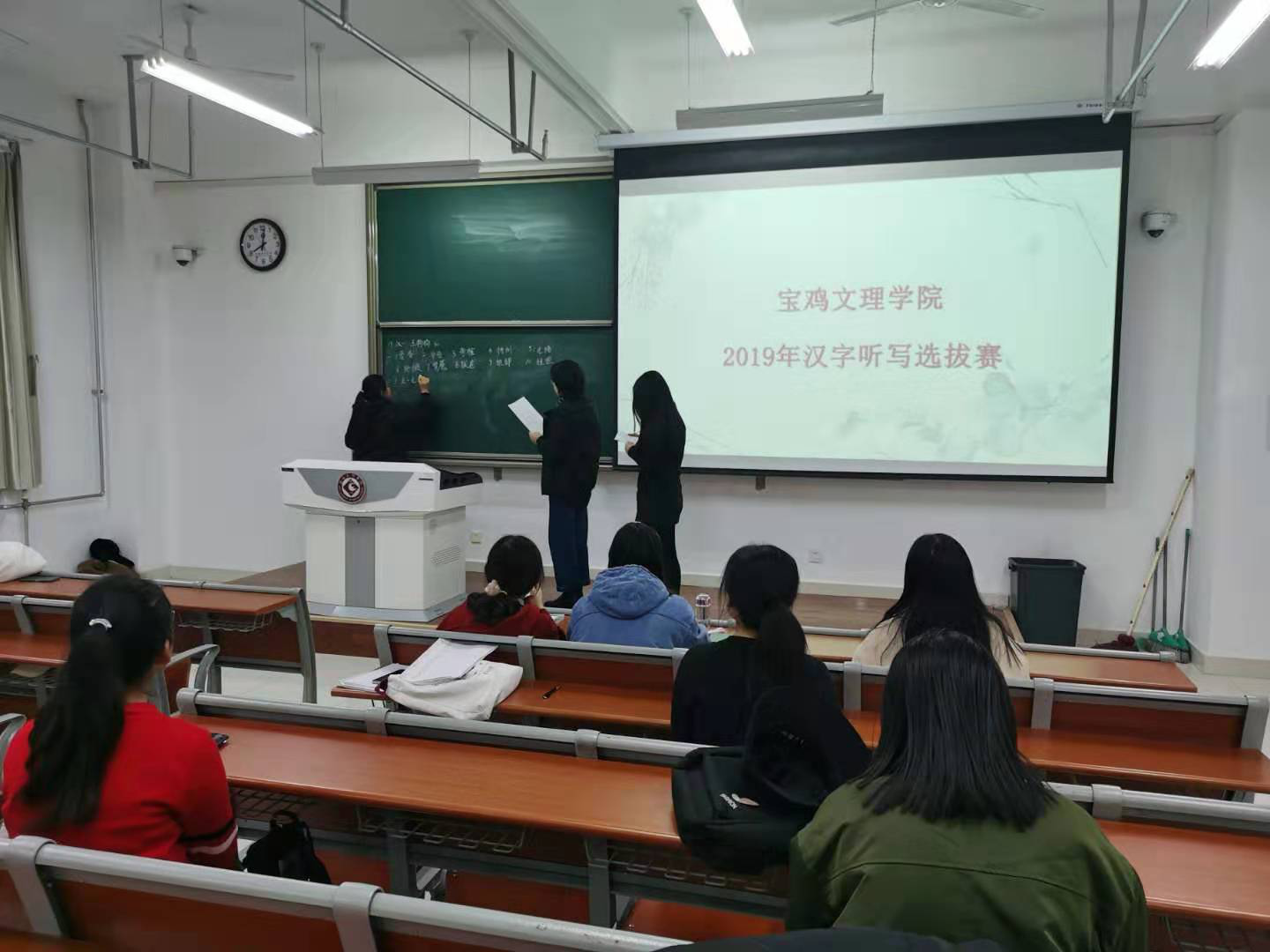 12月8日晚,文学与新闻传播学院在博文楼503举行汉字听写选拔赛。