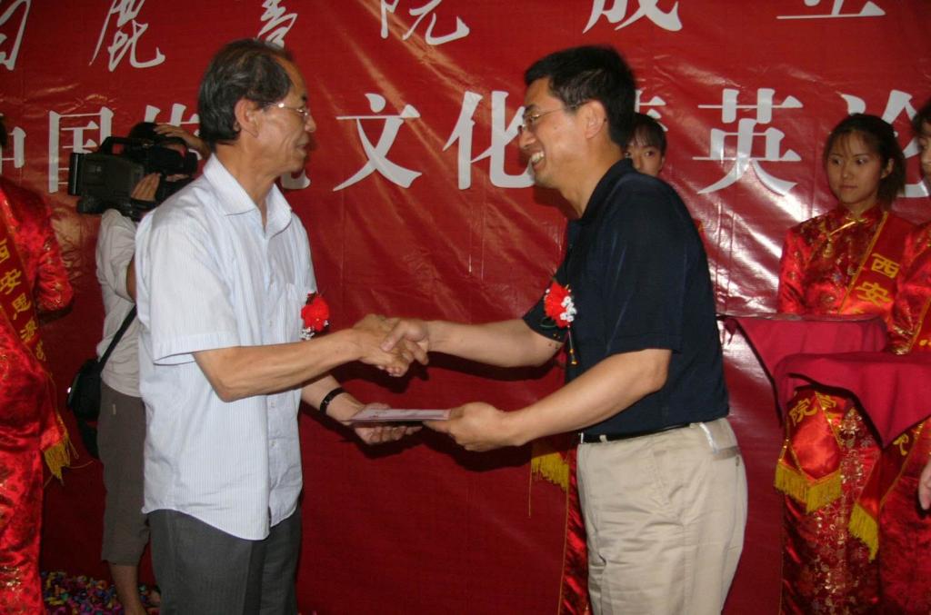 陈忠实先生给赵德利教授颁发“白鹿书院”院士证书 |
