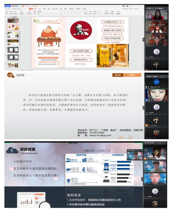 本次大赛以课堂联系实践为主旨,从全院2019级员工的《创新创业基础》课程出发,组织员工积极申报“互联网+”老员工创新创业大赛,全院共收到大赛项目130余项,通过初赛最终选出35项,其中13项优秀奖,另22个项目进入此次网络决赛。决赛在腾讯会议上以线上PPT展示讲解、评委提问答辩两个环节组成。经过选手们激烈的比拼,最终评选出一等奖4名、二等奖7名、三等奖11名。《“互联网+”宝鸡市眉县猕猴桃产业的经营策略》《“益蚤”公共募捐及回收交易APP的策划与运营》《“京玺宠屋”互联网+宠物寄养》《蒲城县椽头馍“互联网+”推广》以其优异的比赛表现赢得了一等奖。