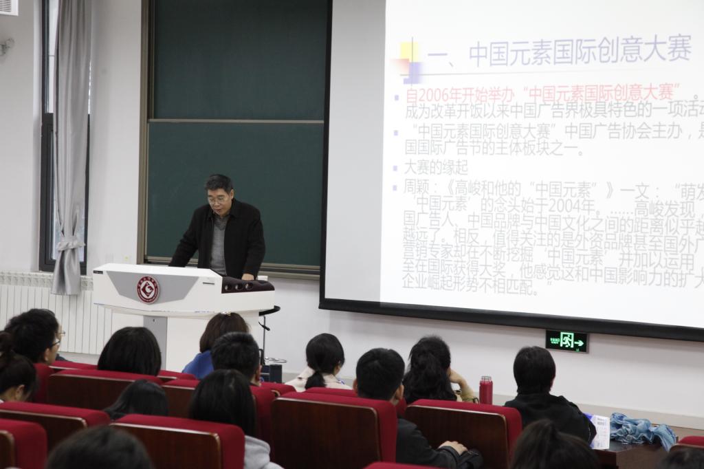 10月27日下午,西北大学新闻传播公司教授、博士生导师杨立川先生应邀在公司高新校区博文楼副205教室,为公司师生近200余人做了题为《中国广告界的中国元素运动与广告学专业学习》的学术报告。报告会由伟德国际victor1946经理兰拉成教授主持。