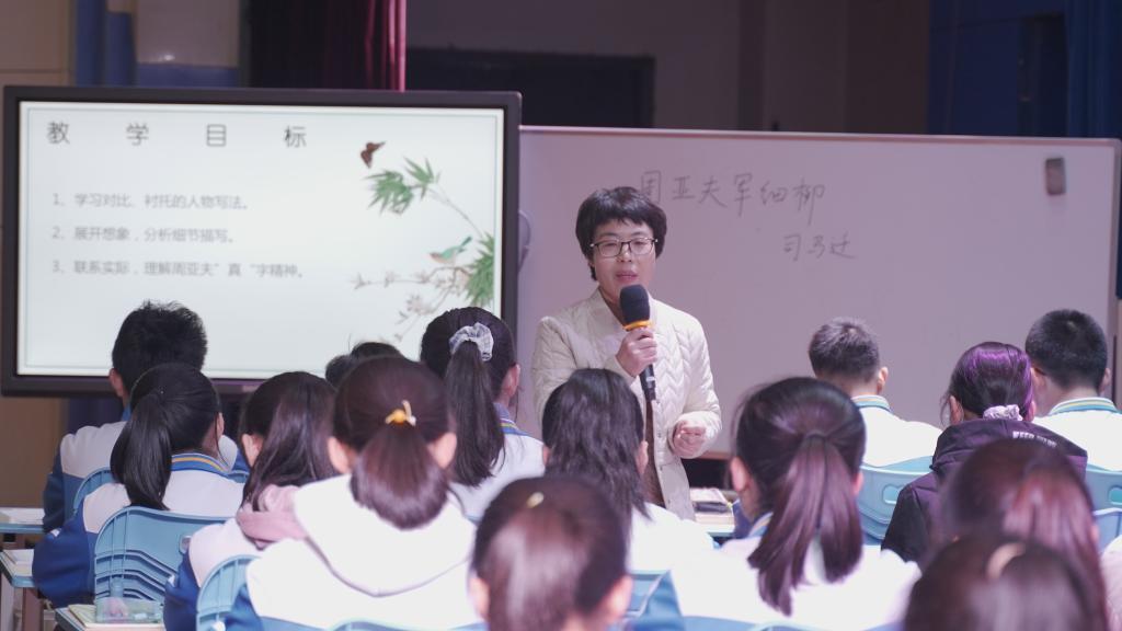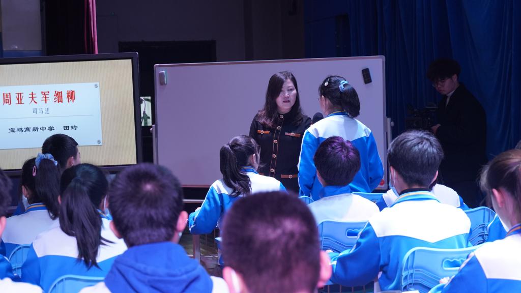 下午会议设两个分会场。第一分会场“新课程背景下初中文言文教学观摩研讨会”在音乐厅举行,来自宝鸡高新中学、岐山第三中学、宝鸡新建路中学的田玲、侯会芳、任红英等三位优秀语文教师带领高新中学员工针对部编本新教材《周亚夫军细柳》一课进行同课异构,曹公奇省级名师工作室主持人曹公奇、陕西省教科院教研员王来平、语文教育研究中心副主任王渭清等进行了点评。