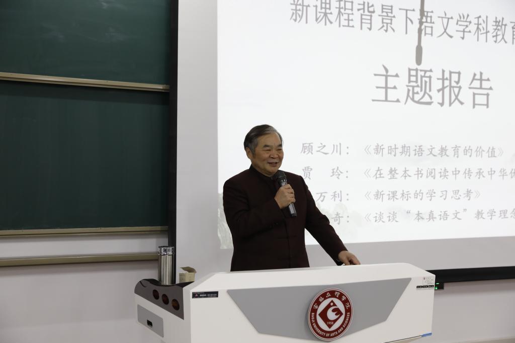 首先是著名语文教育家、人民教育出版社编审顾之川先生带来的“新时期语文教育研究的价值”的主题报告。顾先生的报告从语文教育目前形势说起,他结合新时代党和国家规划的教育发展宏伟蓝图、全面建成小康社会的契机,及2035基本实现社会主义现代化的目标,指出“到2035年要实现中国教育的现代化,语文教育义不容辞要推进现代化。”顾老师认为新时代语文教育新目标是落实立德树人根本任务;明确语文教育的三大内容,即中华优秀传统文化、中国革命文化、社会主义先进文化;新要求是提高员工的语文关键能力;新作为是要坚持语文教育守正创新;语文教师的新使命则是建设中国语文教育强国。顾老师希望语文教育研究中心成立之后,能够整合宝鸡市优秀语文教育资源,为宝鸡教育发展和优秀教师队伍的培养做出贡献。