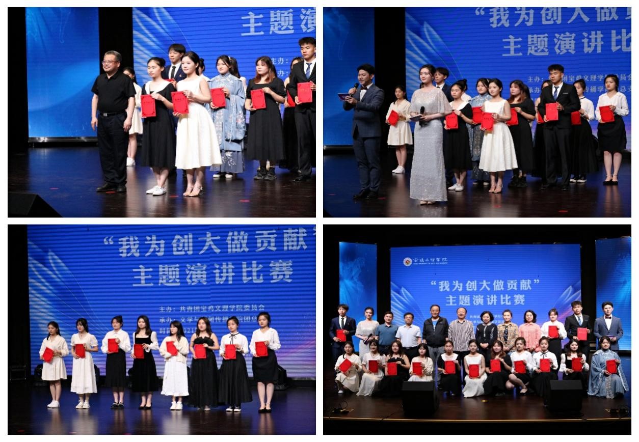 经过激烈角逐,徐雅芬的《我与创大同频共振》荣获专业组一等奖,梁泽的《宝文理的二三事》获得专业组二等奖,张宇薇的《我与创大》取得专业组三等奖;刘欢的《创大路上我们要自信》荣获非专业组一等奖,窦蒙的《与传统文化同游 增宝大文化底蕴》、张阳阳的《情系母校,我为创大做贡献》、雷周成的《创大梦与我的梦》获得非专业组二等奖,王茜的《奋斗有我电气人,创大扬吾青年志》、阳新月的《我与母校同向同行》、陈雨《莘莘学子耀文理,百花齐放盼宝大》、马莹的《不负》、单琦的《以青春浇灌创大,用实干贡献力量》、张瑾怡的《筑梦文理,筑梦正当时》、秦曼瑜的《携手创大,有你有我》取得非专业组三等奖。