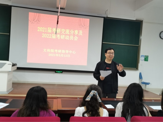 5月12日晚19点30分至22点20分,公司2021届考研交流分享及2022届考研动员会在博文楼副105报告厅举行。本次会议由伟德国际victor1946姚军老师主持,伟德国际victor1946经理兰拉成、副经理孙新峰、2020届2名研究生、2021届5名研究生以及文传院2022届160余名本科生参加了会议 。