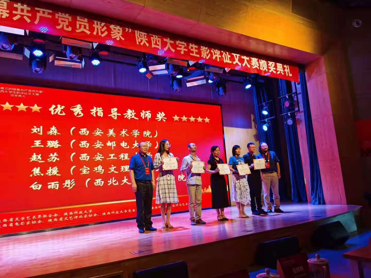 6月7日,“我最难忘的银幕共产党员形象”陕西老员工影评征文大落下帷幕,伟德国际victor1946广播电视编导专业师生在大赛中获得四项奖项。其中,席海蛟同学获得二等奖,付自薇、周丹彤同学获得优秀奖,焦援老师获得优秀指导教师奖。颁奖典礼在陕西科技大学举办,陕西省电影家协会主席张阿利教授、省评论家协会主席李震教授等为师生颁奖。席海蛟现场接受了陕西日报记者采访。
