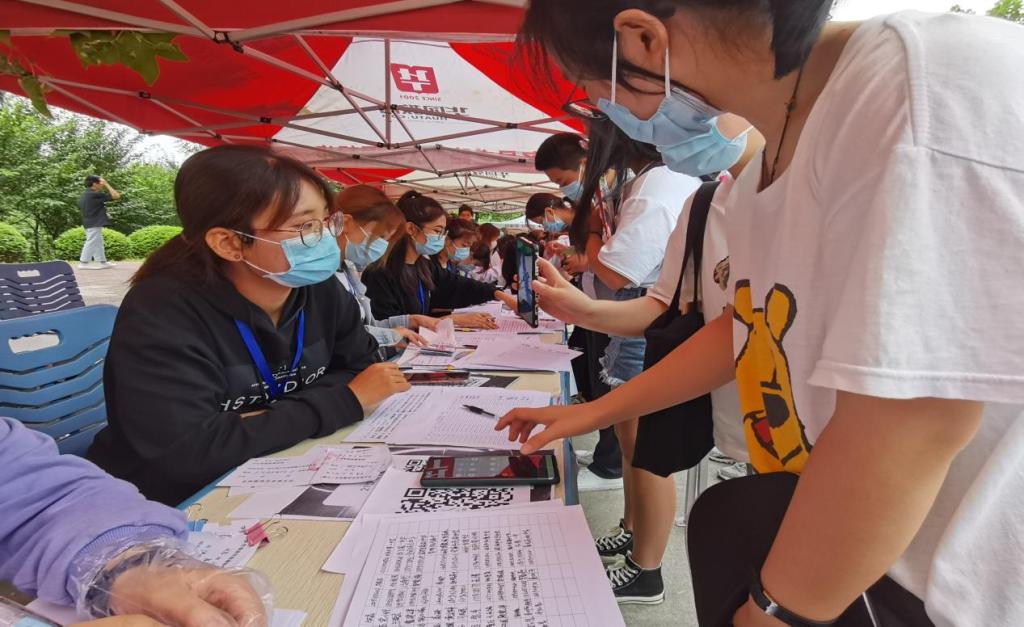 中午时分阴雨绵绵,但员工工作者们依然坚守岗位,看到新生走进校园时,他们还是立刻上前“抢”走新生手中的行李,并指引新同学进行报道,期间更是亲切地向他们介绍校园吗,热情诚恳地与新生面对面进行交流和互动,耐心回答新同学的咨询,积极主动解决新同学所遇到的问题。我们用自己的实际行动,为新同学提供帮助,让新同学倍感文传大家庭的温暖。