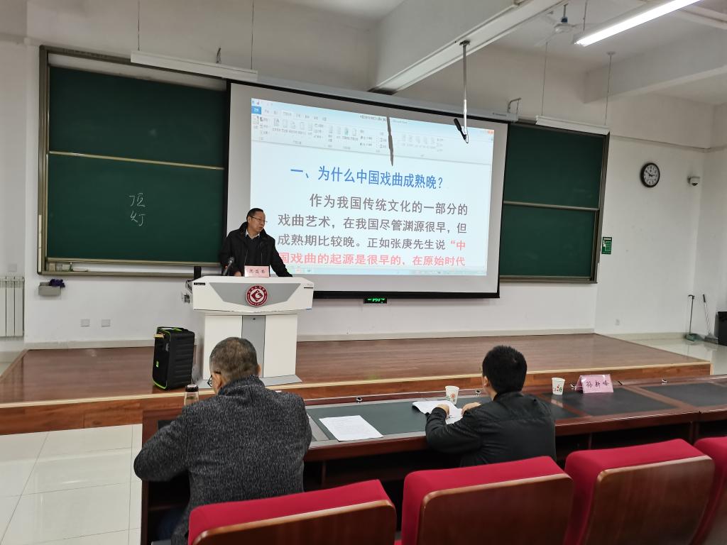 2021年12月11日下午14:30分,伟德国际victor1946文公司高益荣教授、王晓鹃教授莅临伟德victor1946,在博文楼副105报告厅为公司部分专业教师以及200余名本科生开展了“中国戏曲中的传统文化精神”讲座。讲座由副经理孙新峰教授主持。