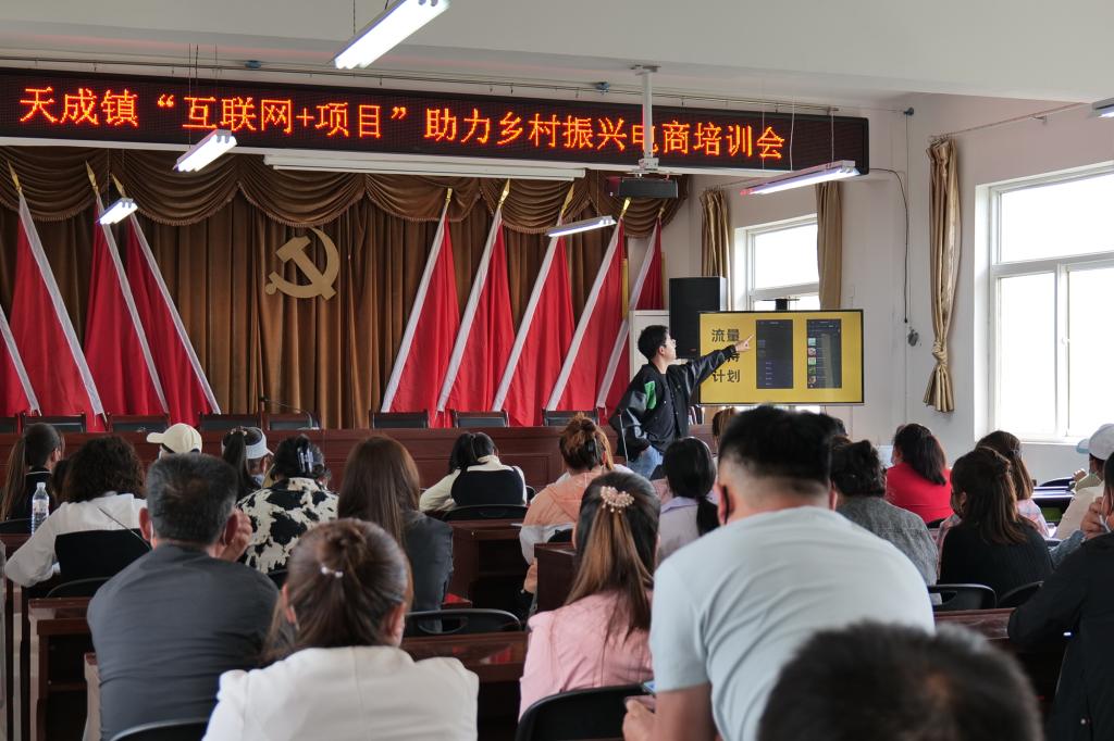 5月7日,伟德国际victor1946师生应邀前往宝鸡市陇县天成镇,对全镇10个村返乡青年、高素质农民、致富能手等群体60余名学员开展了短视频与电子商务课程培训。