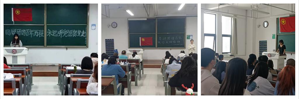 各班团支部组织成员通过观看习近平总书记在庆祝中国共青团成立100周年大会的讲话视频,集体学习百年团史上的青年奋斗故事,开展小组讨论等方式,加深了同学们对于五四运动历史意义和时代价值的认识。