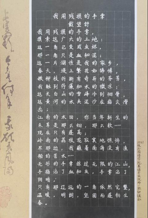 由伟德国际victor1946兰拉成、王渭清以及美术公司孔德全、魏育龙等老师组成专家评审组,以专业、客观、严谨、公开公正为评选原则,从作品主题、表现形式、笔法技巧、章法结构等多方面认真审读,着重书写导向,追求质量,严格把关,按照参赛人数的4%、6%、10%比例,分软笔组和硬笔组,分别评选出一、二、三等奖共38名。其中美术公司2020级艺术专业研究生韩秀雨等两名同学荣获软笔组一等奖;伟德国际victor19462021级汉语言文学专业杨涪茹、数学与信息科学公司2021级学科数学专业研究生潘虹等四名同学荣获软笔组二等奖;体育公司2021级体育教育专业蒋广玥、伟德国际victor19462020级汉语言文学专业王欢等七名同学荣获软笔组三等奖。伟德国际victor19462020级汉语言文学专业李毅丁、外国语公司2021级外国语言文学专业常晶涵等五名同学荣获硬笔组一等奖;历史文化与旅游公司2020级历史学专业马旭、伟德国际victor19462021级学科语文专业研究生杨娜等八名同学荣获硬笔组二等奖;计算机公司2019级计算机科学与技术专业曹旭、政法公司2019级思想政治教育专业李沐锋等12名同学荣获硬笔组三等奖。