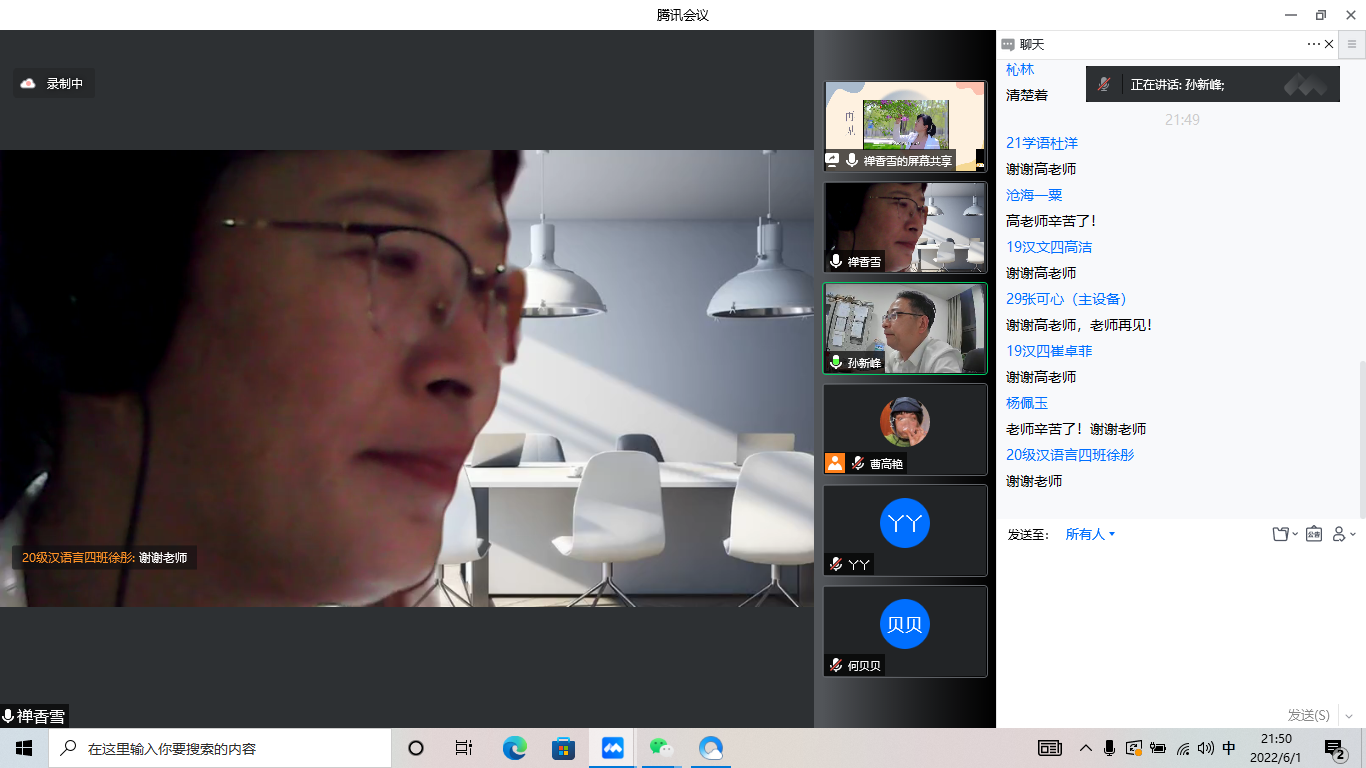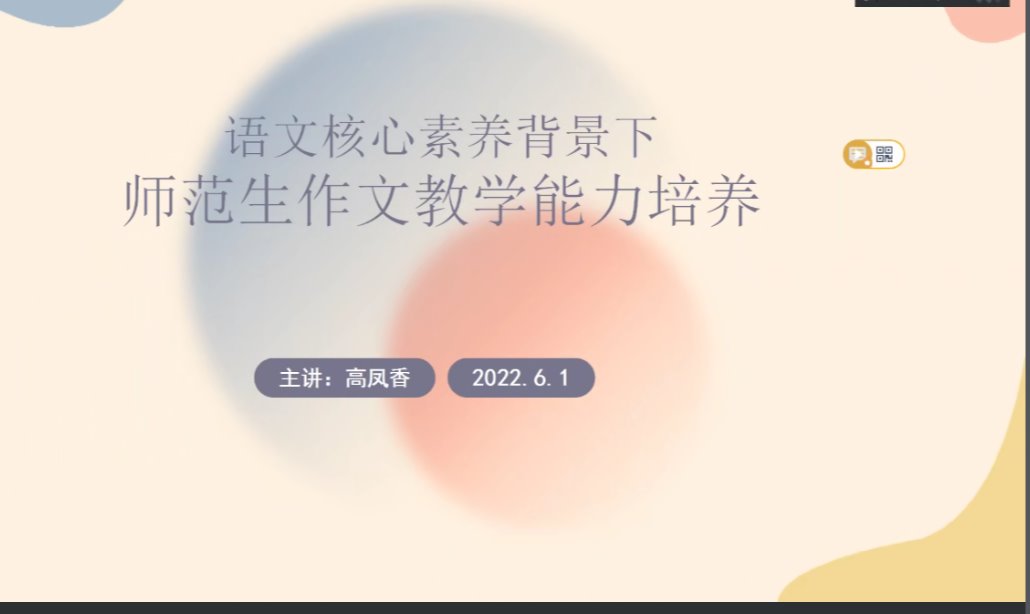2022年6月1日晚19:30, 作为公司聘请的语文学科教育专业硕士生校外导师,陕西省杨凌区高级中学高凤香老师以腾讯会议的方式为公司作了题为《语文核心素养背景下师范生作文教学能力培养》的学术报告。伟德国际victor1946副经理孙新峰主持本次会议。公司部分研究生导师、校外50余名中学教师,以及公司30余名学科教学(语文)专业硕士、130余名汉语言文学专业本科生在线聆听了本次学术讲座。