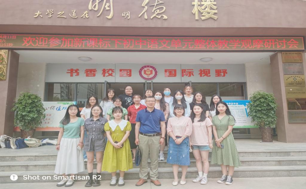 2022年6月11日,由宝鸡市教育学会和曹公奇名师工作室主办、万唯中考研究院协办、宝鸡高新第一中学和田玲名师工作室承办、公司语文教育研究中心提供学术支持的“新课标下初中语文单元整体教学观摩研讨会”在宝鸡高新第一中学举行。公司21级学科教学(语文)专业18名研究生在语文教育研究中心副主任王渭清副教授的带领下,赴宝鸡高新第一中学参加“新课标下初中语文单元整体教学观摩研讨会”。