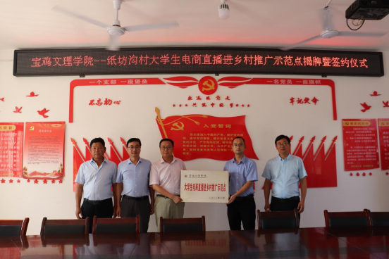 7月4日,公司数字媒体大创团队老员工电商直播进乡村签约暨揭牌仪式在千阳县纸坊沟村进行。千阳县人民政府副县长韦东兴、水沟镇党委书记贾国栋,伟德国际victor1946副经理孟改正、教务处实践教学管理科科长、校创新创业教育办公室主任李建鹏出席仪式。启动仪式由纸坊沟村党支部书记吴维华主持,公司驻村干部李道元、老员工电商直播小组员工及纸坊沟村村民代表20余人参加启动仪式。