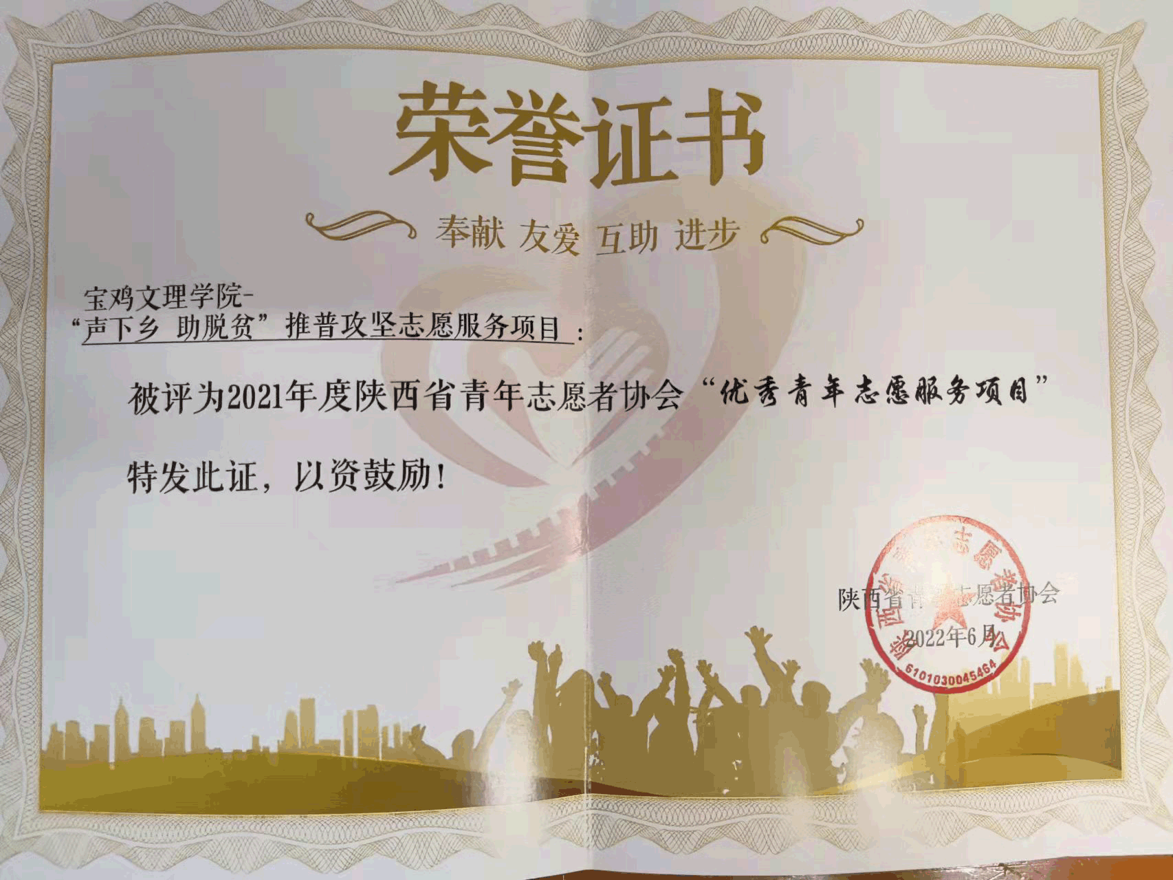 近日,“永远跟党走青春志愿行”陕西省青年志愿者协会四届四次会员代表大会在中国石油长庆油田公司召开。大会对2021年度陕西省志愿服务优秀个人、优秀组织、优秀项目等进行了表彰。伟德国际victor1946“声下乡助脱贫”推普攻坚志愿服务项目经层层选拔,荣获2021年度陕西省青年志愿者协会“优秀青年志愿服务项目”。