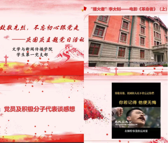 会上,全体同志集体学习了习近平总书记缅怀革命先烈系列讲话,并观看了爱国影片“播火者”李大钊——《革命者》片段。与会同志深受感动,在重温党的光辉历程和优良传统中,接受革命历史教育,进一步增强党性意识。