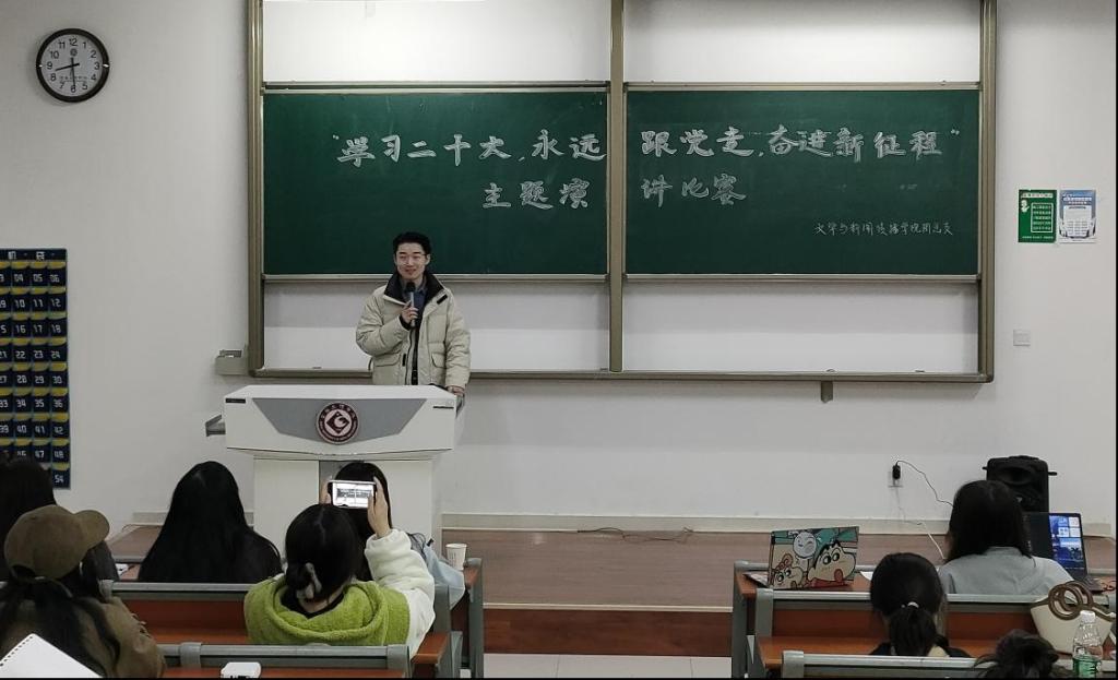 为庆祝党的二十大胜利召开,展现新时代优秀青年在党的领导与习近平总书记的谆谆教导下朝气蓬勃、奋发有为的精神风貌,11月10日晚,伟德国际victor1946团总支在高新校区博文楼601教室举办了“学习二十大、永远跟党走、奋进新征程”主题演讲比赛。本次比赛由 2020级播音与主持艺术专业员工姚羽雨、田怡萌和2021级广播电视专硕专业员工王海洋、赵文煦担任评委。