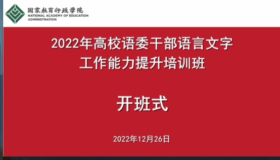 此次培训包括“学习贯彻党的二十大精神,加大国家通用语言文字推广力度”“党的语言文字事业百年历程”“高校服务民族地区国家通用语言文字推广普及”“高校在语言文化助力乡村振兴中的作用发挥”等近10个专题,邀请了孟庆瑜、袁伟、杨亦鸣、屈哨兵、苏新春、李宇明等数位专家学者讲授。