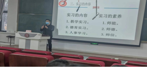 会上,首先由经理兰拉成教授做了教育实习动员讲话。兰经理回顾自身实习经历,强调了教育实习的重要性,动员全体师范生要有吃苦耐劳的品质,要不断进行专业知识积累,提升自身教学技能。