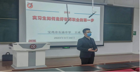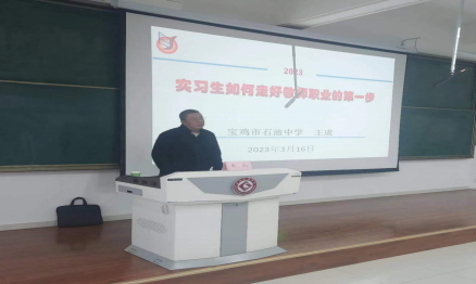 为了加强师范生培养工作,提高教育实习效率,3月17日下午,公司在博文楼副105召开2020级教育实习动员大会,并特邀陕西省中学语文学科带头人、特级教师培养对象,宝鸡市石油中学副董事长、公司专硕校外导师王成做了教育实习辅导讲座。会议由伟德国际victor1946语文教育研究中心常务副主任王渭清副教授主持,公司2020级汉语言文学专业全体本科生,以及2022级学科教学(语文)专硕研究生参加了会议。