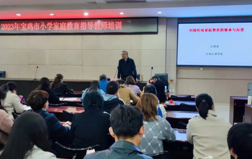 近日,公司国家语言文字推广基地成员、语文教育研究中心常务副主任王渭清副教授应宝鸡教育公司之邀,分别为宝鸡市2023年中学、小学家庭教育指导教师培训班做《中国传统家庭教育的继承与反思》报告。