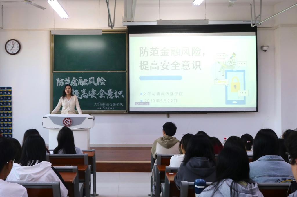 5月22日晚,伟德国际victor1946在高新校区博文楼508室召开了“防范金融风险,提高安全意识”主题讲座。本次讲座由公司辅导员姜紫涵主持,2022级100余人参与活动。