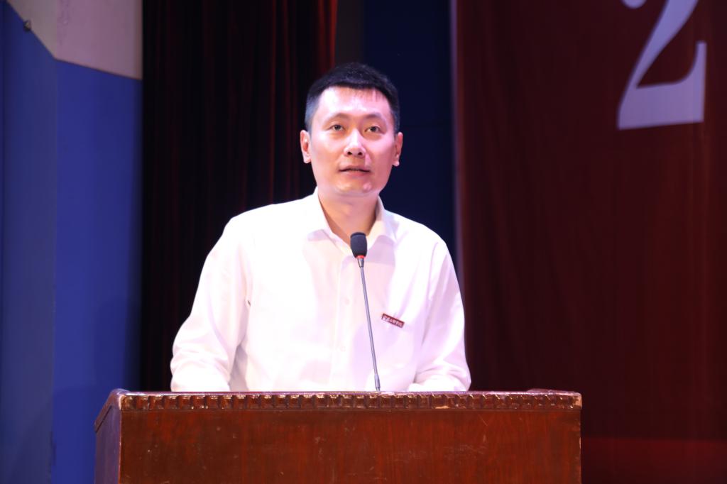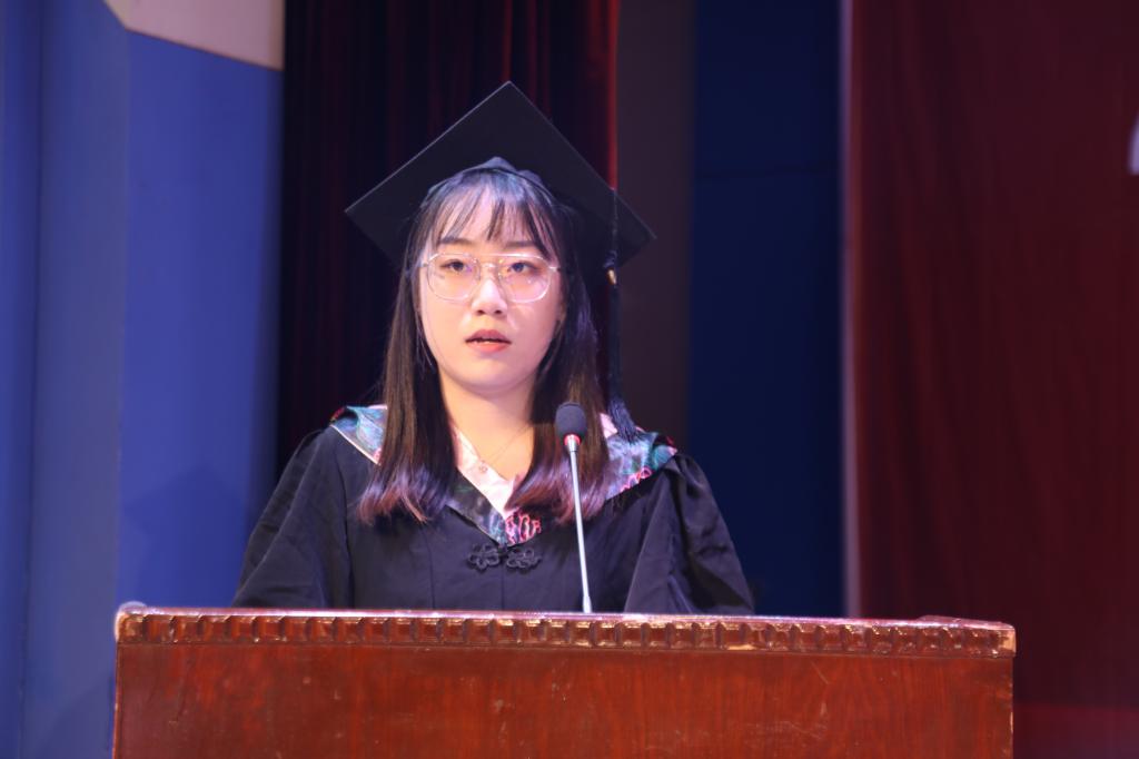 会上,公司党委书记郭锋航介绍了此次参加学位授予仪式的领导和教职工,经理兰拉成宣读了伟德国际victor1946学位授予决定,为2023届毕业生拨正流苏及颁发学位证书并致辞。青年教师张锐、员工乔曼、梁艺迪分别代表教职工、在校生和毕业生致辞。