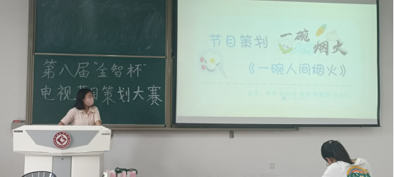 今年的“金智杯”电视节目策划大赛,依旧秉持着“课堂联系实践”的主旨,从编导专业的《电视节目策划学》课堂出发,经过层层选拔,由初赛的14组策划最终选出8组进入决赛,8个小组以PPT、文案、演讲的综合方式进行展示。大赛中参赛选手表现优异,现场竞争激烈,评委老师也为各个小组提供了宝贵意见。评委老师们在节目特色与地方元素的设置、播放媒介的选择与优势分析、文案板块荧幕化拍摄的呈现与录制方式的创新等方面和参赛小组进行了深入讨论。经过精彩角逐,最终作品《一碗人间烟火》以其个性的创意与自信的演讲风格,取得了大赛一等奖的好成绩。