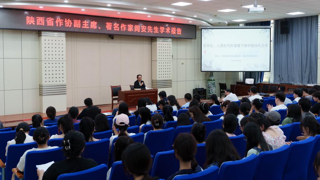 7月4日下午,应公司邀请,陕西省作协副主席、著名作家阎安先生应邀前来公司,在木铎厅作了一场题为《世界化、人类化写作语境下的中国当代文学》的学术报告会。本报告会是公司“陕西文学大讲坛”第17讲。报告会由伟德国际victor1946副经理、陕西文学研究所所长孙新峰主持。公司中国现当代文学学科教师、2021级、2022级在读研究生、本科生等200多人聆听了报告。