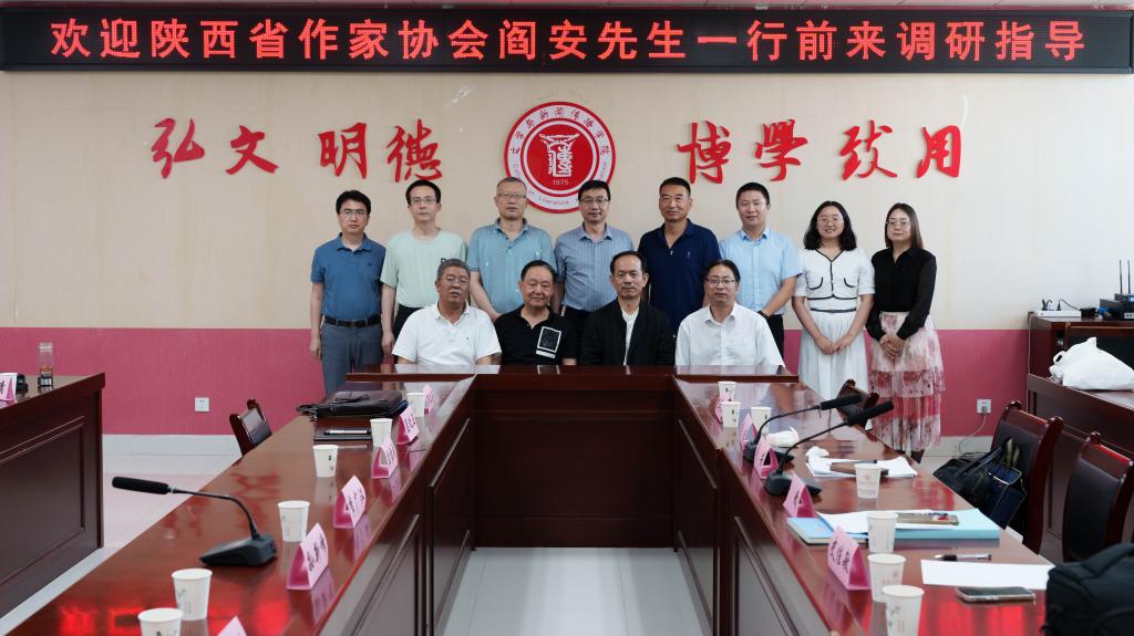 2023年7月4日,著名作家、陕西省作家协会副主席、《延河》杂志社社长、执行主编阎安等一行7人前来公司,先后来校陕西文学研究所、伟德国际victor1946进行调研。伟德国际victor1946经理兰拉成、副经理、校陕西文学研究所所长孙新峰,副经理孟改正、中文系主任李剑清、中国现当代文学学科带头人郭文元、现当代文学教研室主任李雅妮、文艺学教研室主任王永奇、语文教育学科带头人王渭清、中国现当代文学学科骨干张继红、王俊,校陕西文学研究所专职研究员马平川、以及宝鸡市作家协会主席李广汉等领导、老师,以及公司文艺学、中国现当代文学等相关学科研究生参加了调研活动。