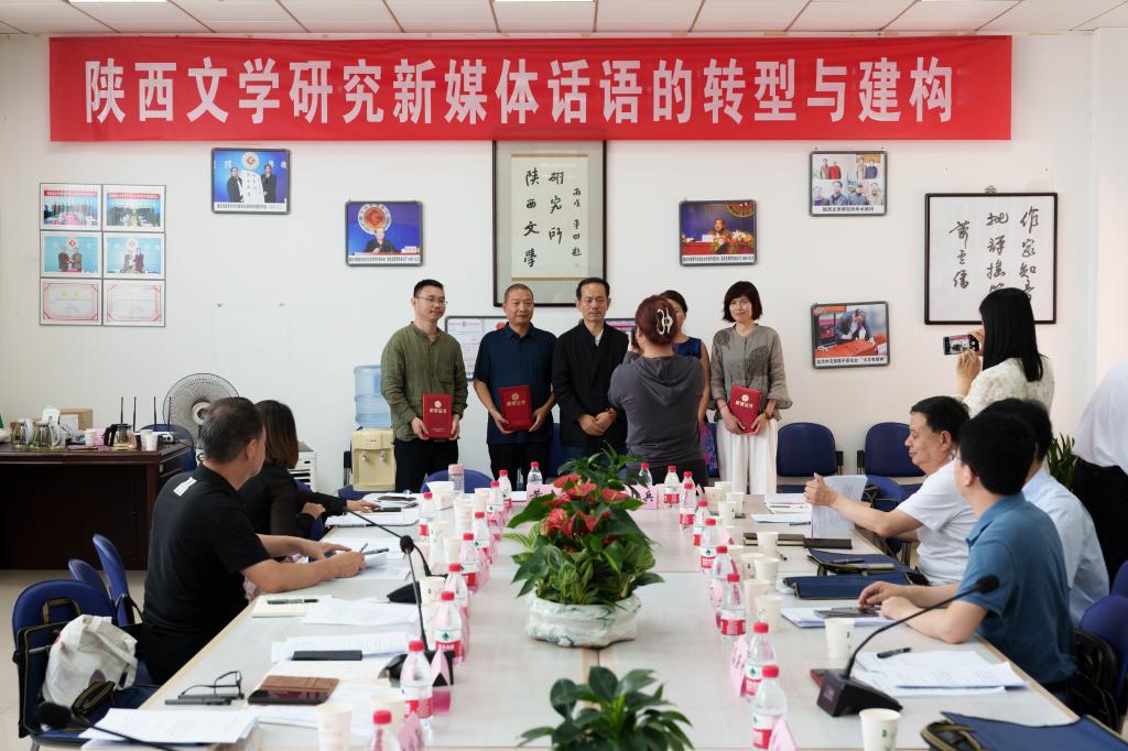 研讨会间隙,阎安副主席一行还参观了陕西文学研究所文化墙建设,对陕西文学研究所建所17年以来所取得的成绩表示赞赏。阎安副主席还为陕西文学研究所6名先进文学研究工作者颁发了获奖证书。并和全体研讨会代表一起合影留念。