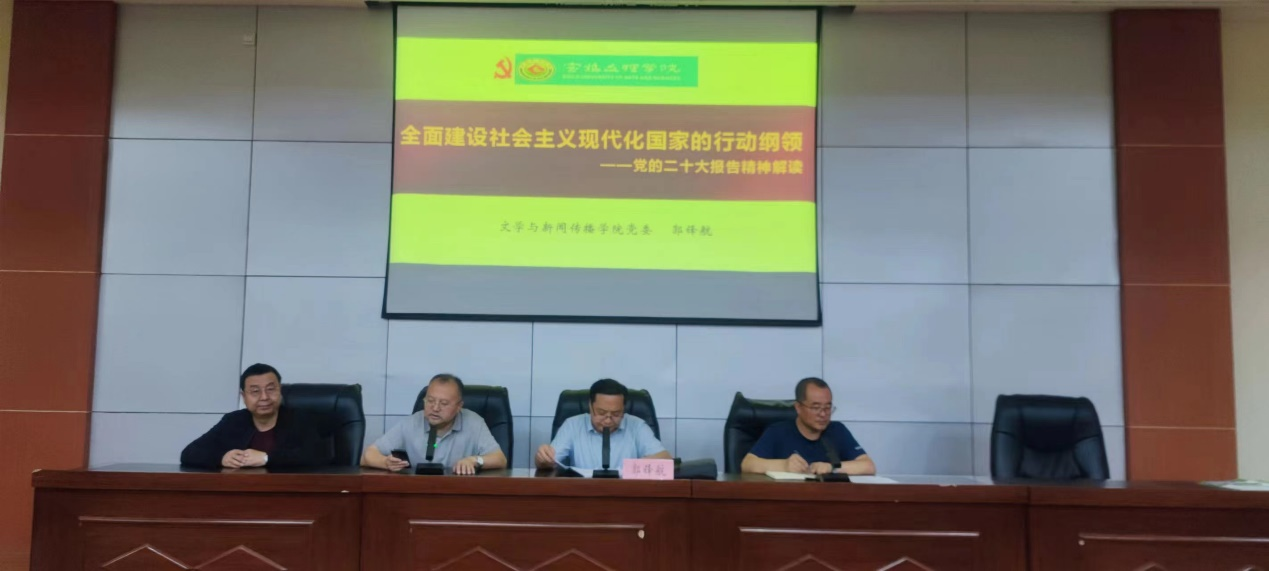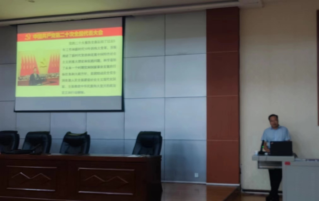 他从中国共产党第二十次全国代表大会的主题和“三个务必”引入,强调“团结奋斗”是习近平总书记对海内外中华儿女发出的号召。并从新时代十年成就推动我国迈上新征程、新时代新征程面临的挑战、开辟马克思主义中国化时代化新境界、以中国式现代化全面推进中华民族伟大复兴、以党的自我革命引领社会革命等五个方面对党的二十大报告进行了宣讲。