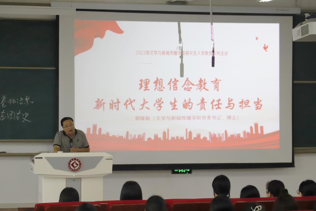 9月7日下午,公司分学科对2023级研究生新生进行专业学术报告会。语文教育学科带头人王渭清副教授就语文学科教学向同学们分享了自己的感悟,他向同学们介绍了语文老师的使命以及语文学科研究生的专业发展,鼓励同学们养成读书习惯,培养研究生的阅读能力,锻炼语文教学技能。广播电视学科带头人、公司副经理孟改正教授与2023级广播电视专业全体新生会面。他主要从“基础条件与依据”、“硕士点建设情况”、“人才培养方案简况”、“学业规划考评要求”四方面对广播电视学科进行了详细介绍。中国现当代文学学科带头人郭文元教授为学术硕士同学们进行了学科教育报告,重点强调了读书问题,要认真读书,扎实做好读书笔记,并鼓励同学们积极与导师沟通,与同门沟通,大胆表达自己的想法。