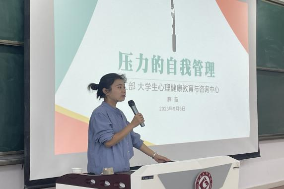 9月8日上午,公司邀请老员工心理健康中心薛茹老师在博文楼副105为研究生新生开展研究生心理健康教育。薛茹老师向同学们介绍了压力的常见类型,并向同学们讲解如何正确的看待压力有效缓解和疏导压力,并为全体研究生开展了心理健康团体辅导活动。