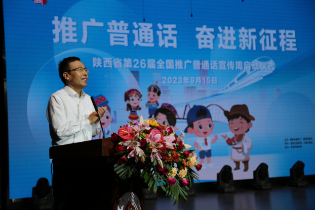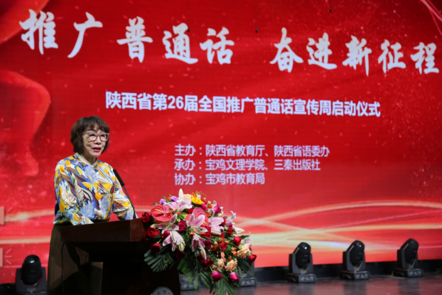 董侠在讲话时指出,要以习近平新时代中国特色社会主义思想为指导,自觉将语言文字工作融入到国家全面深化改革的大局中,全面深化语言文字事业改革发展,不断创新,通过形式多样的宣传和实践活动,引领广大群众不断增强自觉规范使用国家通用语言文字的意识,不断增强自觉传承弘扬中华优秀传统文化的意识,树立高度的文化自觉和文化自信,不忘初心、牢记使命,推动新时代语言文字事业实现高质量发展。她强调,在新征程上,要扛起宪法赋予的法定责任,我们要牢记习近平总书记的殷切嘱托,以人民为中心、以新发展理念为指导,用好推普宣传周平台,凝聚推广普及国家通用语言文字的高度共识;要聚焦铸牢中华民族共同体意识,在全社会营造和谐健康的语言环境;要肩负起新时代的光荣使命,积极探索数字化赋能新思路新举措,着力提升国家通用语言文字普及程度和质量,推动语言文字事业高质量发展取得新进展,服务教育强国、文化强国建设。她希望各地、各部门以此为契机,充分认识推广普及国家通用语言文字的战略意义,大力宣传国家语言文字法律法规和方针政策,大力弘扬爱国主义精神和优秀革命传统,深化全民悦读,积极营造和谐健康的语言环境,努力践行“第二个结合”,坚定文化自信,扎实开展工作,讲好陕西故事,传递陕西声音,彰显陕西新形象,建设书香新陕西,为全面建设社会主义现代化国家、全面推进中华民族伟大复兴贡献力量!
