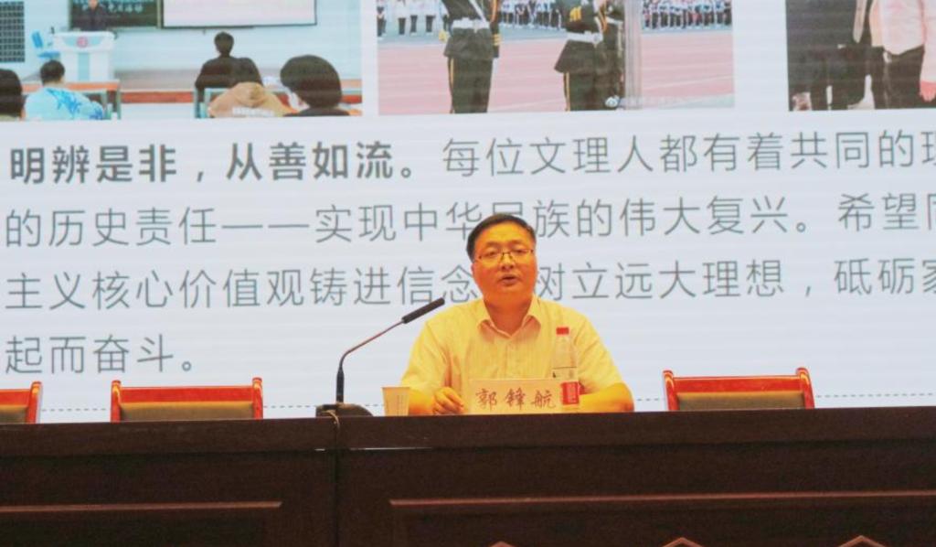 随后,郭锋航以《理想信念教育:新时代老员工的责任与担当》为题向全体新生讲述了“开学第一课”。
