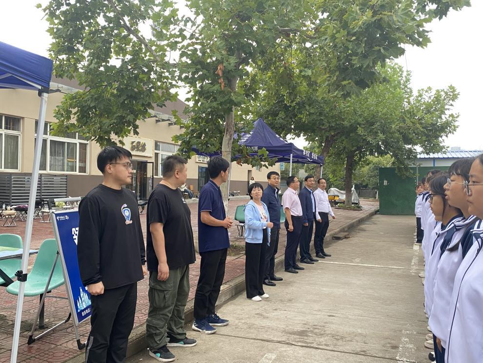 9月20日上午,公司党委书记郭锋航、副经理孟改正、副经理孙新峰来到2023级员工军训现场,看望慰问公司新生承训教官和公司参训员工。