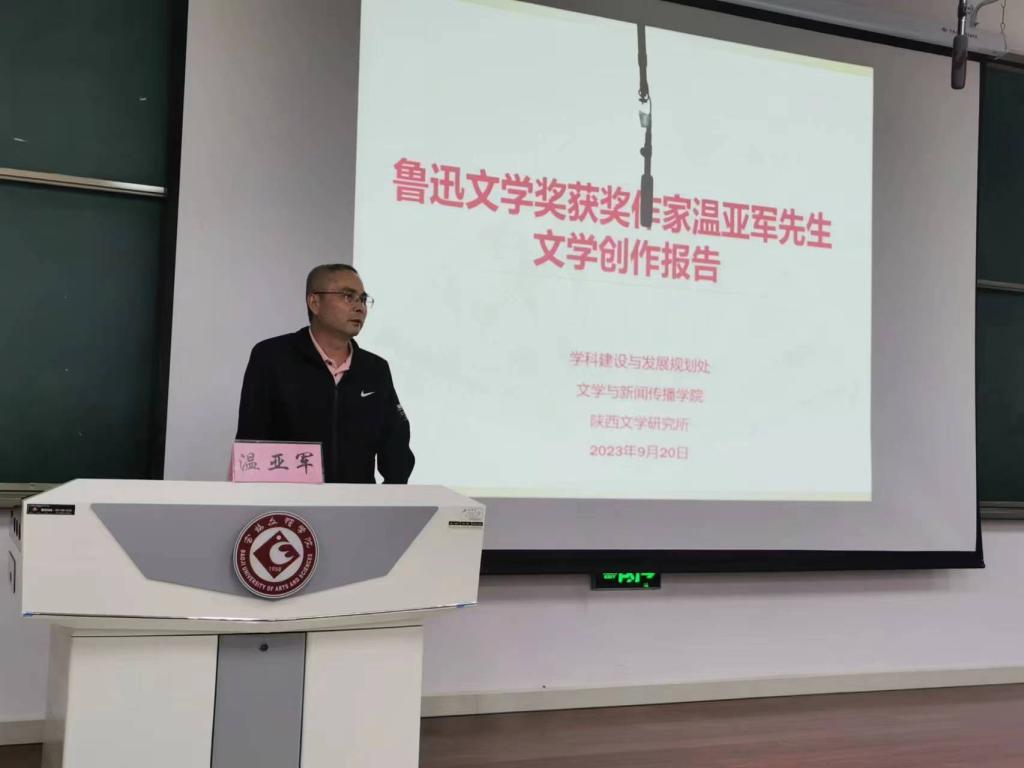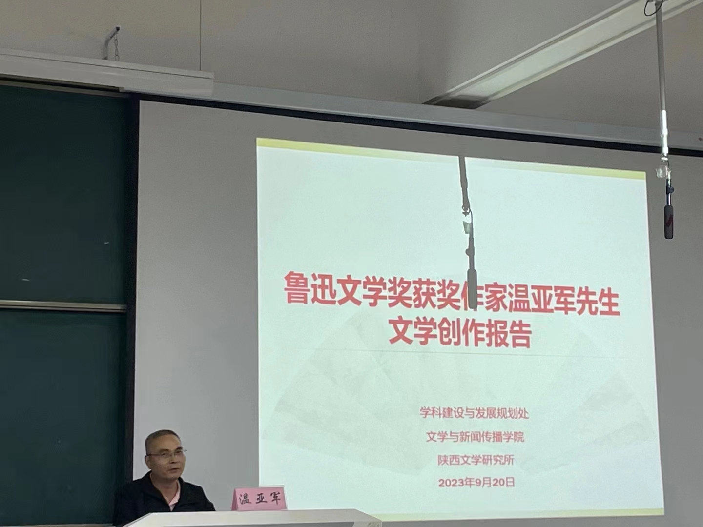 2023年9月20日晚20:00-22:00,公司在博文楼副105举办“鲁迅文学奖获奖作家温亚军先生文学创作报告”,公司2021级、2022级学术硕士与2023级全体研究生新生聆听了报告。本次学术讲座是公司“陕西文学大讲坛”第18讲。报告会由伟德国际victor1946副经理、校陕西文学研究所所长孙新峰主持。