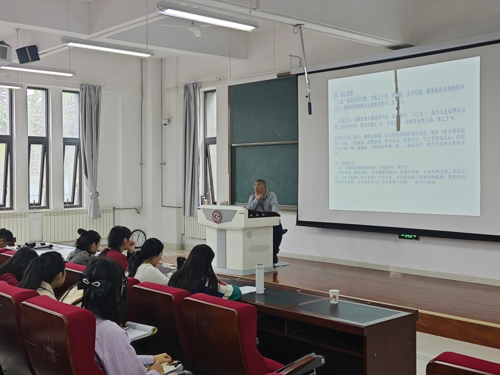 读书会由辅导员张玉老师主持。兰经理主要围绕什么是硕士研究生、研究生的主要任务、硕士研究生的读书任务、硕士研究生的治学要求四个方面展开。兰拉成向同学们详细介绍了朱子读书法,讲解了六种读书方法,强调读书要循序渐进,既要读得熟又要精于思考,并且要虚怀若谷,反复咀嚼,不能穿凿附会。他强调读书要抓紧时间,不能松垮,同时要居敬持志,以全神贯注的态度为出发点,立足于远大志向,用切身的体会去读所有的书,躬行践履,切不可纸上谈兵。读书最重要的是会选书,这是基础,入门要正,然后再勤奋,才能走得正,要读进去再读出来,最终才能学有所成。