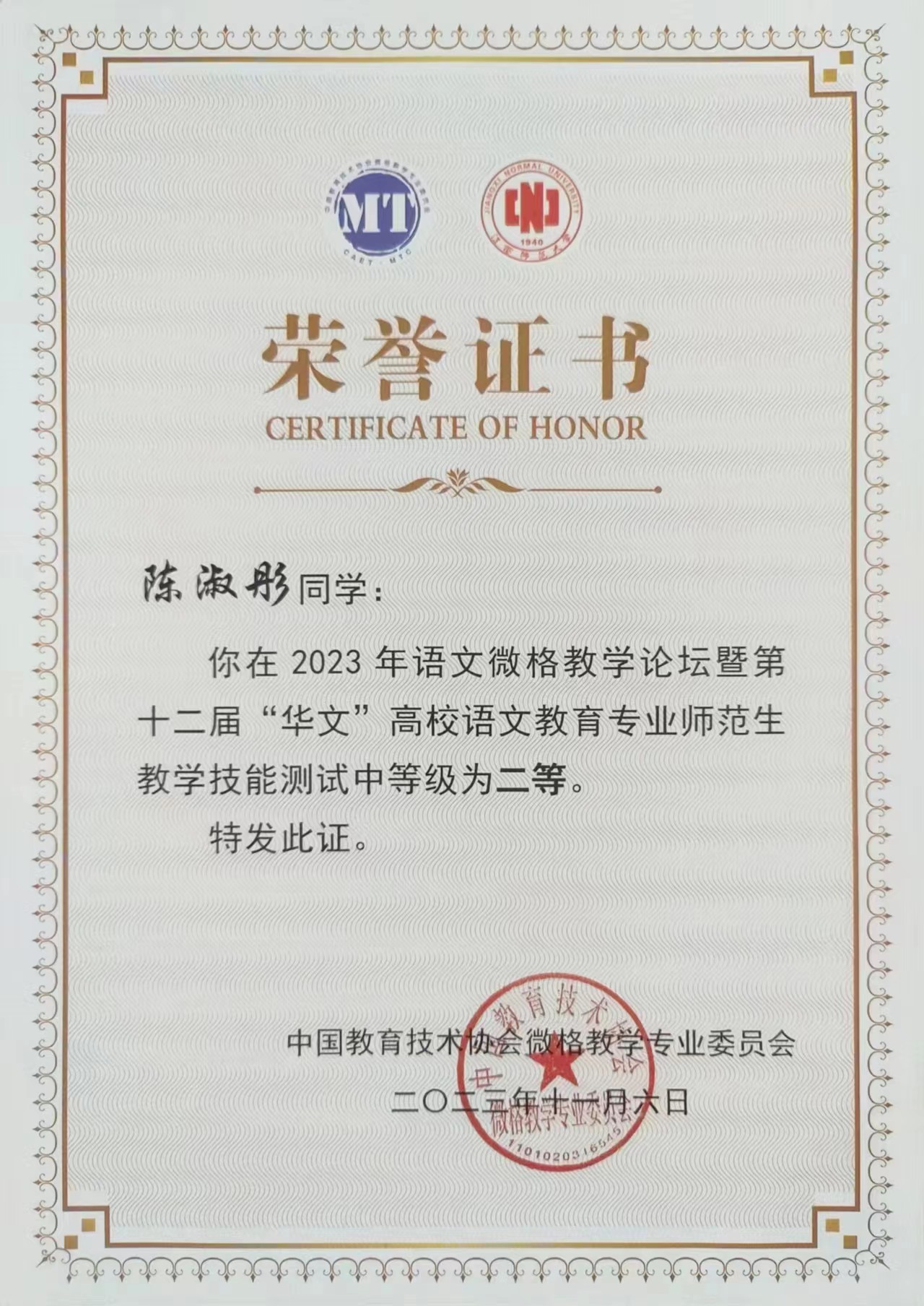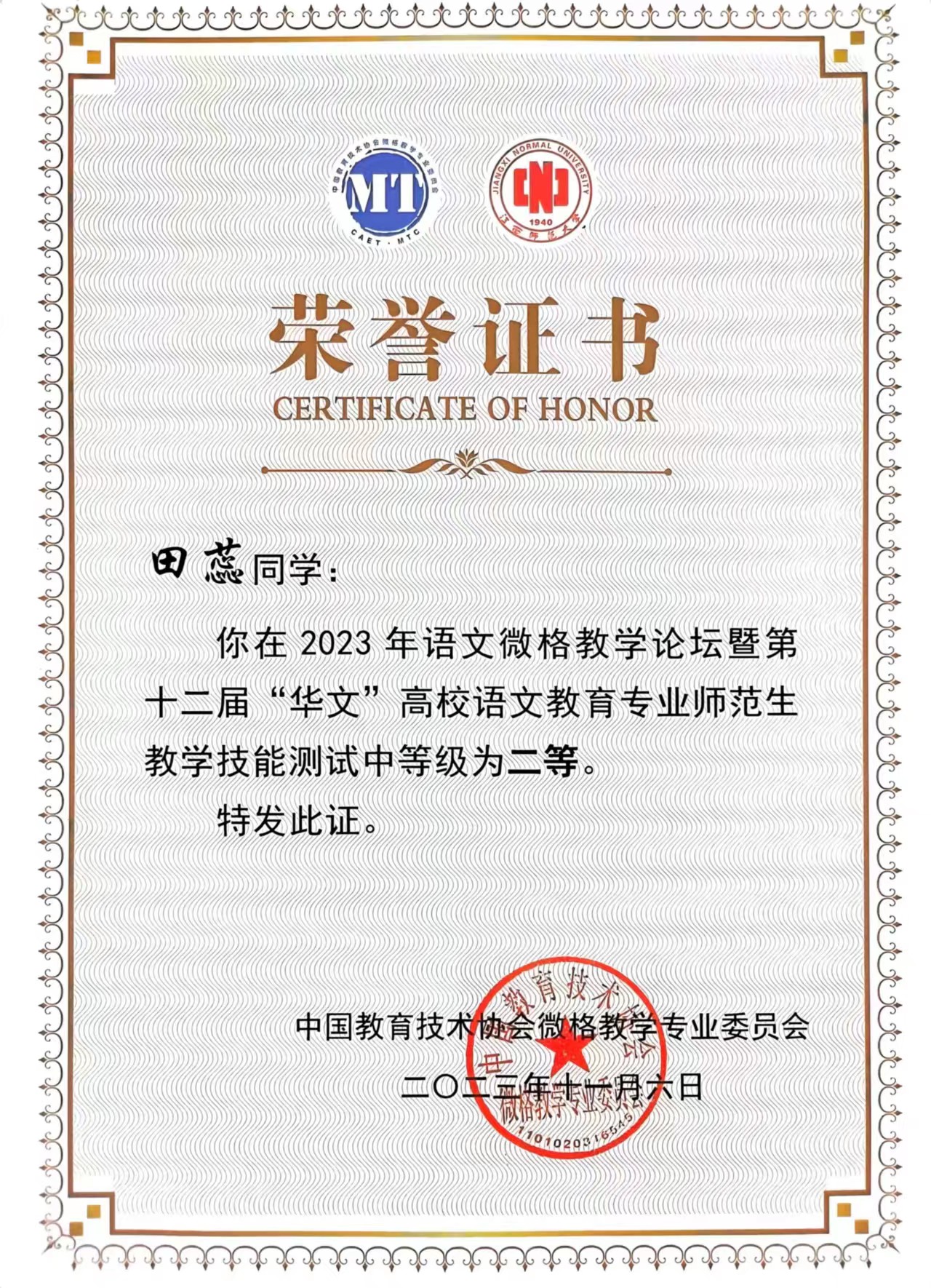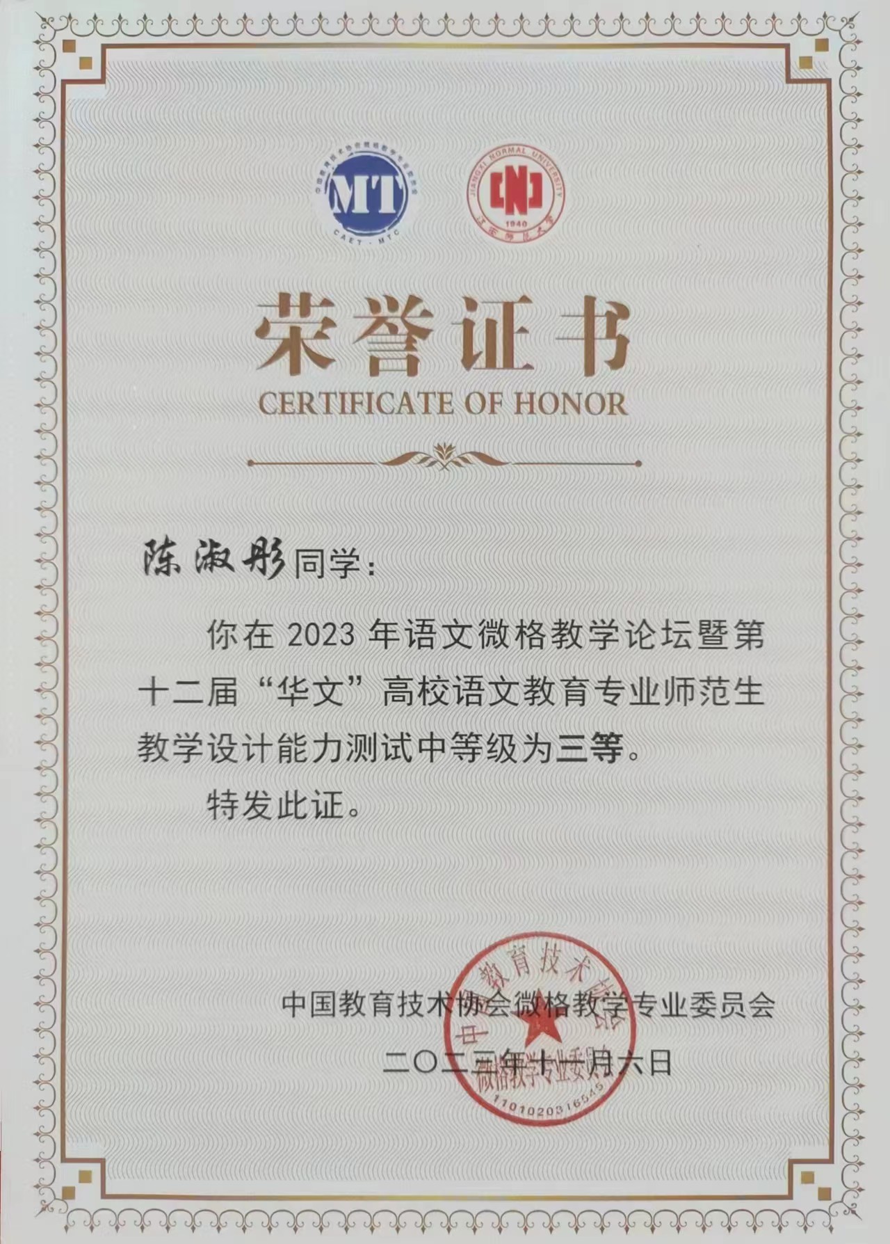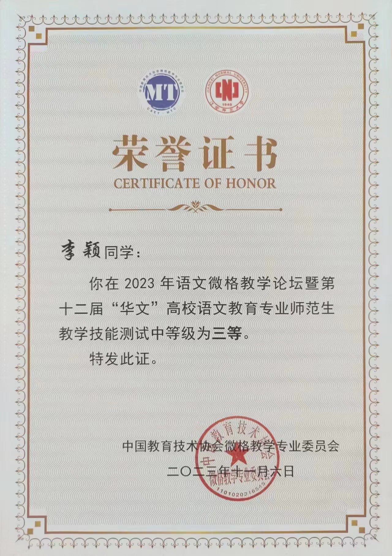 近日,第十二届“华文”高校语文教育师范生教学技能测试与交流展示活动在江西师范大学落下帷幕。伟德国际victor1946员工在教学技能测试中,荣获一等奖1项,二等奖4项,三等奖1项;在教学设计能力测试中,荣获二等奖1项,三等奖5项。