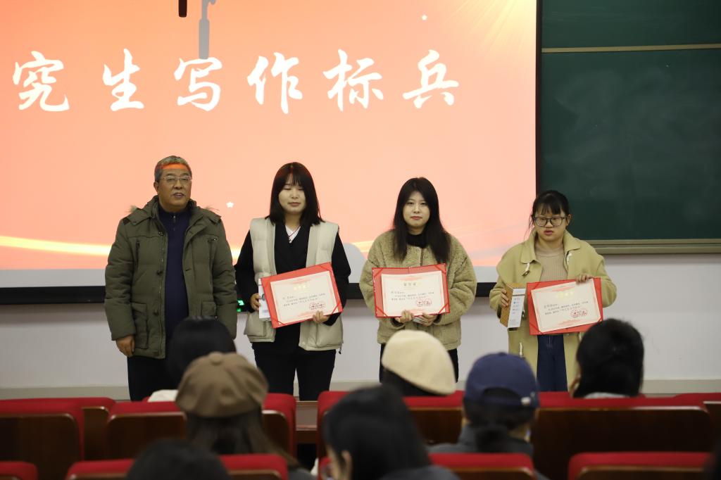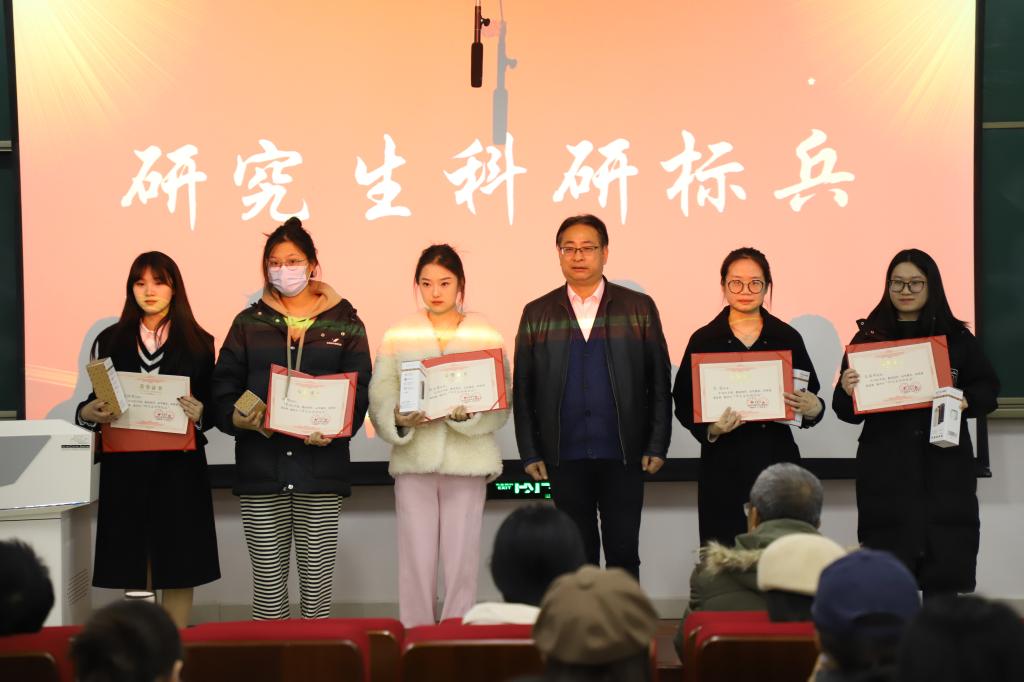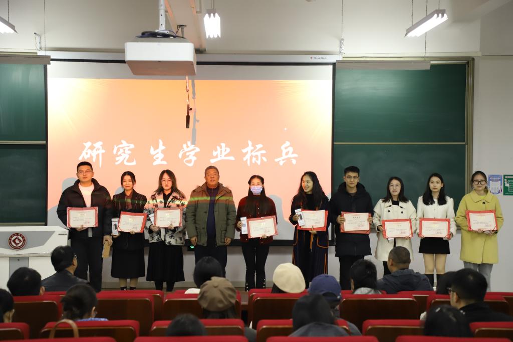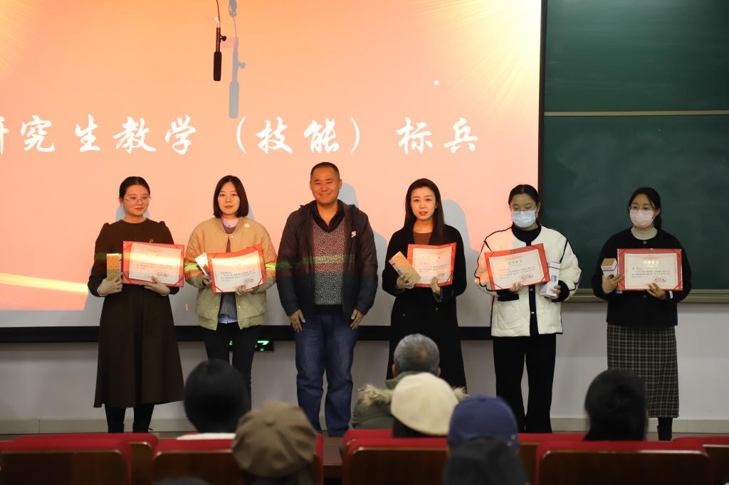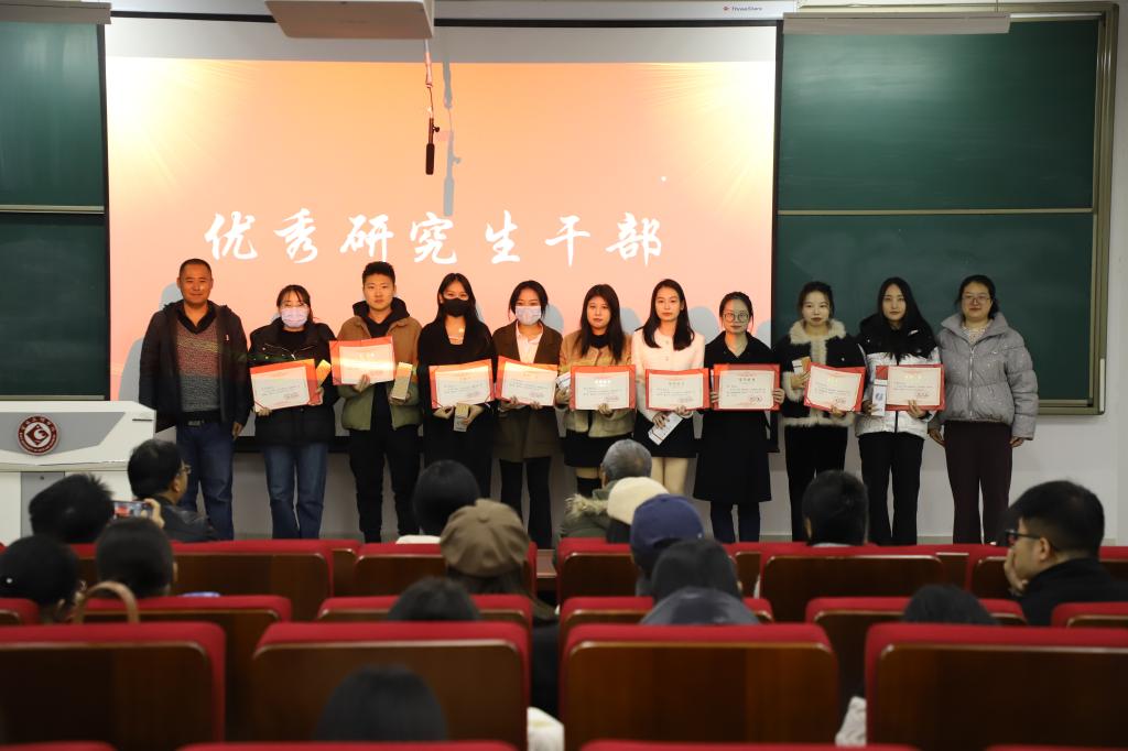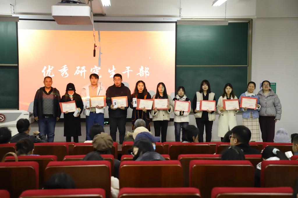 活动开始,副经理孙新峰宣布获奖同学名单,兰拉成经理等为荣获2023年度研究生学业标兵、科研标兵、教学(技能)标兵、写作标兵及优秀研究生干部的同学颁奖。