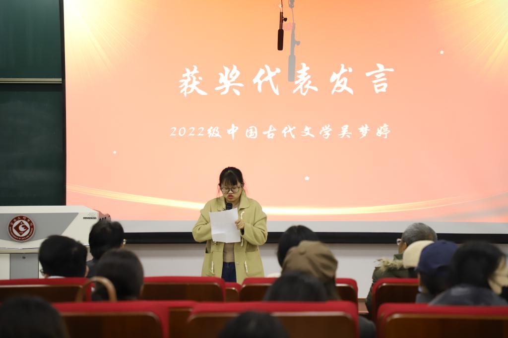2022级研究生吴梦婷及2023级研究生田蕊分别作为获奖代表和2023级新生代表进行了发言。