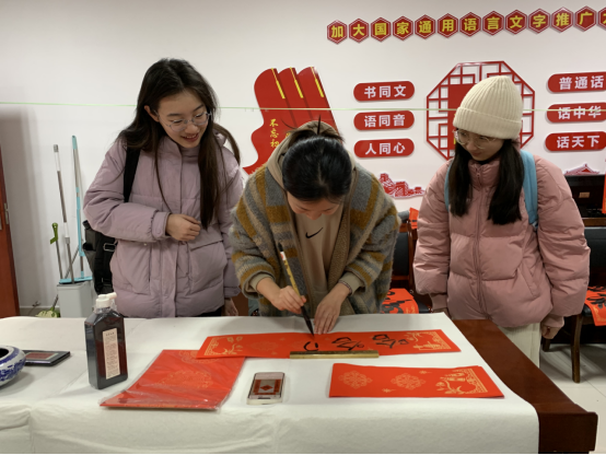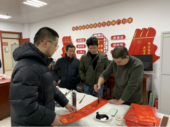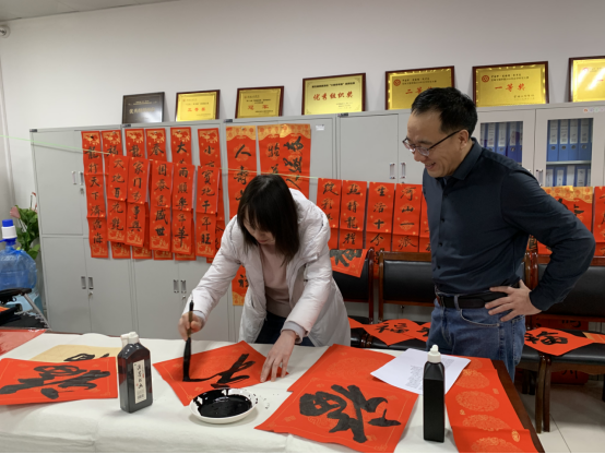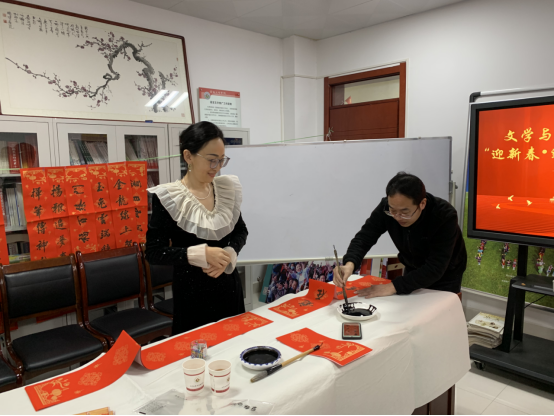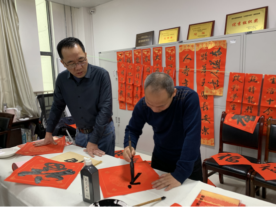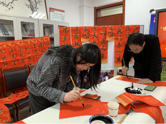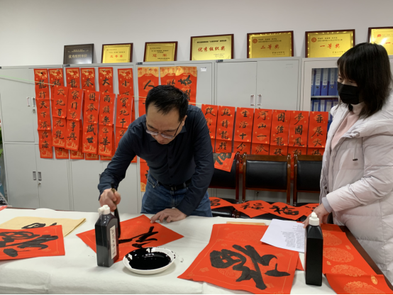 “迎新春•送祝福”春节对联书写是文传院分会长期以来坚持的特色文化活动。文传院分会邀请公司以及美术公司老师,给本院教职工书写春联,送上春节的祝福,增加教职员工的幸福感。国家语言文字推广基地也通过春联书写活动,在员工中推广汉字书写的书法文化,进一步激发员工热爱中国优秀的传统书法文化,铸牢“中华文明共同体”意识。