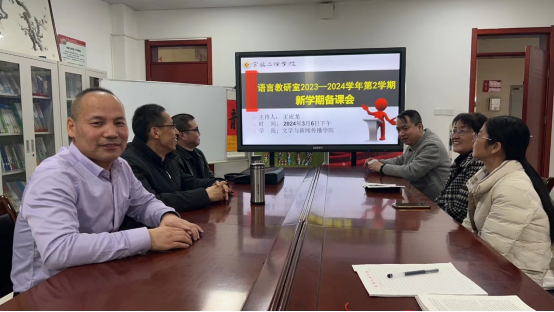 2024年3月6日下午,语言教研室在博文楼1403召开2023-2024学年度第二学期新学期集体备课会。备课会由王应龙主持,教研室全体教师参加了会议。