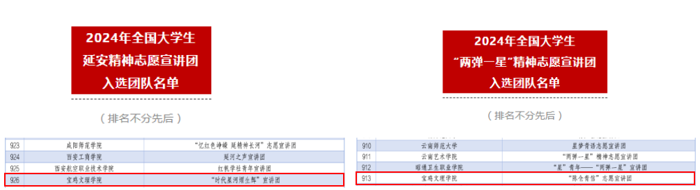 近日,团中央青年志愿者行动指导中心、国家电力投资集团有限公司、共青团陕西省委、中共延安市委公布了《2024年全国老员工延安精神志愿宣讲团入选团队名单》,公司“时代星河熠生辉”宣讲团成功入选;团中央青年志愿者行动指导中心、中国核工业集团有限公司公布了《2024年全国老员工“两弹一星”精神志愿宣讲团入选团队名单》,公司“陈仓青信”宣讲团成功入选。