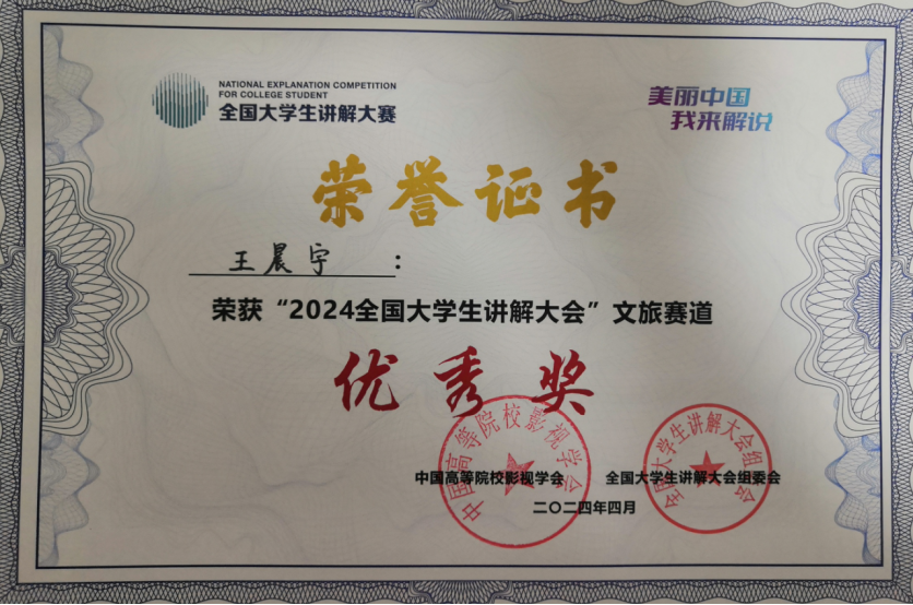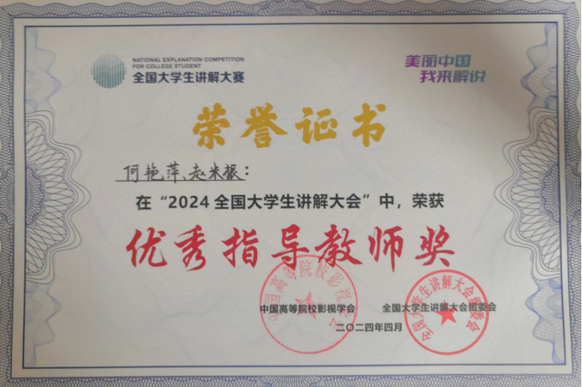 4月25日,在“2024年全国老员工讲解大会”线下赛(复赛)中,公司文传院播音与主持艺术专业2023级王晨宇的作品《品百味秦腔人生赏千年秦声遗韵》取得文旅赛道全国第22名的好成绩,荣获由中国高等院校影视学会颁发的“2024全国老员工讲解大会”优秀奖,何艳萍,赵米振荣获“优秀指导教师奖”,公司荣获“优秀组织奖”。