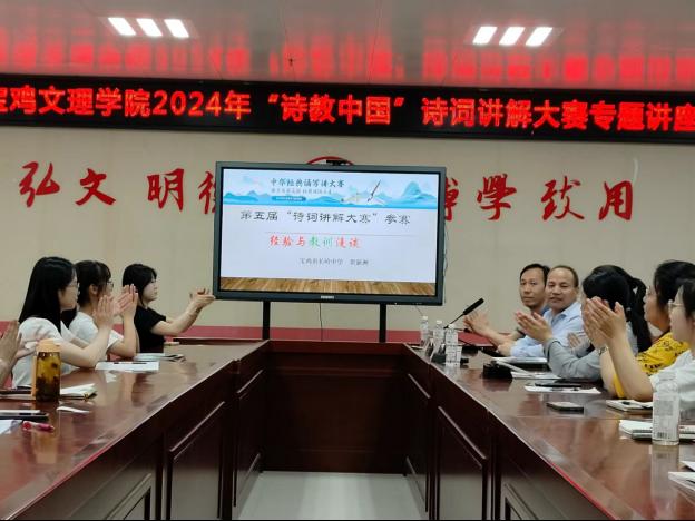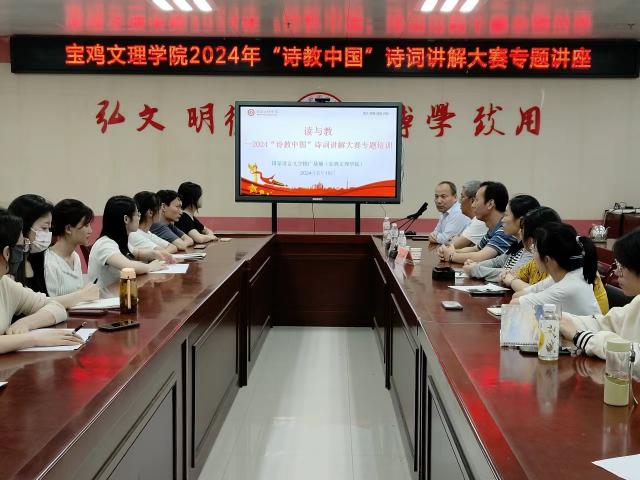 为传承弘扬中华优秀传统文化,引导公司参赛选手深入挖掘中华经典诗词中所蕴含的丰富哲理和人文精神,提高“诗教中国”诗词讲解大赛水平,2024年5月15日晚,伟德国际victor1946经理兰拉成教授,宝鸡市教学能手、渭滨区渭滨名师、诗词讲解大赛全国二等奖获得者、长岭中学语文教研组长贺新洲老师在高新校区博文楼1401会议室分别为来自不同公司的四十余名参赛选手做了伟德国际victor19462024年“诗教中国”诗词讲解大赛专题培训讲座。讲座由国家语言文字推广基地执行主任王应龙教授主持。
