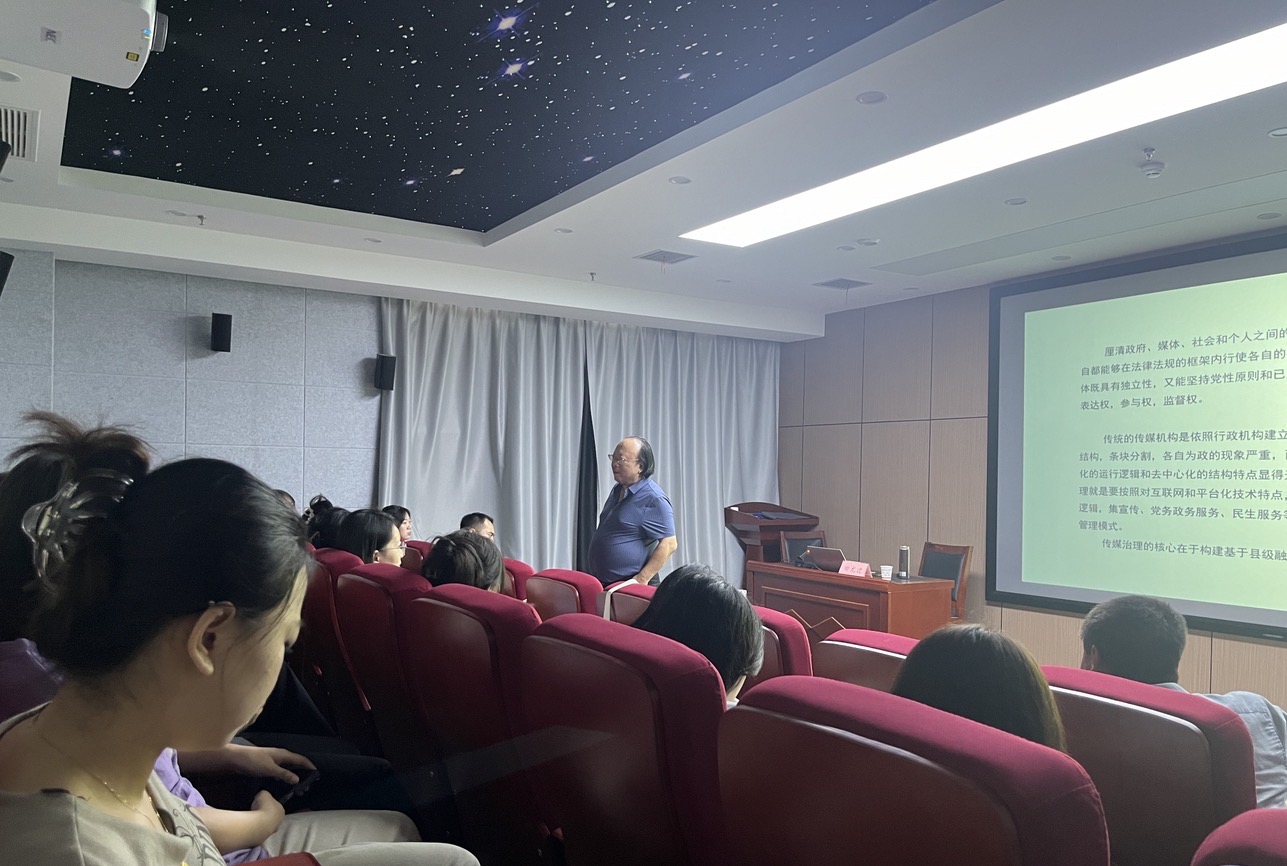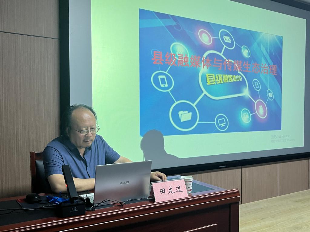 讲座中,田龙过教授结合近些年国家政策和发展要求,围绕县级融媒体中心建设的基本情况、现阶段发展和价值意义三方面展开,阐述了县级融媒体建设与传媒生态之间密不可分的关系。