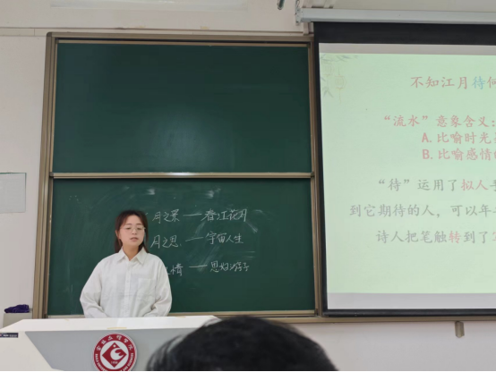 在十分钟的模拟授课环节中,同学们围绕初、高中语文教材中的古诗词篇目,以自然大方的仪态、富于个人理解的教学设计、新颖的教学方法以及美观的板书设计进行了生动演绎,展现了公司师范生扎实的专业知识和出色的教学能力。评委组从教学组织能力、教学手段运用及实践操作能力等方面对选手进行综合考核,最终有12名同学脱颖而出,其中王佳梦、张露两位同学荣获一等奖;王羿、李思雨等四位同学荣获二等奖;白荷、闫梦欣等六位同学荣获三等奖。