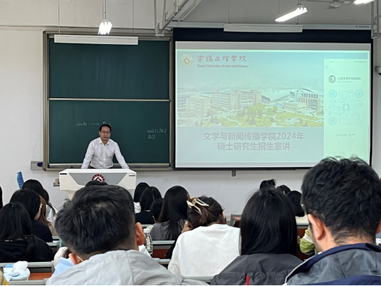 本次招生宣讲会分别在博文楼506教室、博文楼副楼303教室举行,由公司考研中心主任王华斌主持,副经理孙新峰教授主讲,各专业优秀的硕士研究生代表以及公司2025届、2026届有考研意愿的毕业生200余人参加。